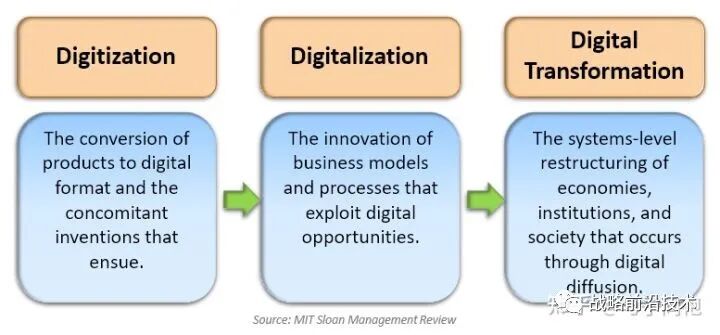 麻省理工学院Sloan学院的管理评论文章的定义。注意这三个概念,正好对应了企业或军种数字转型的三个步骤。太空军的数字军种,digital service取的含义就是数字转型成功的军种之意。