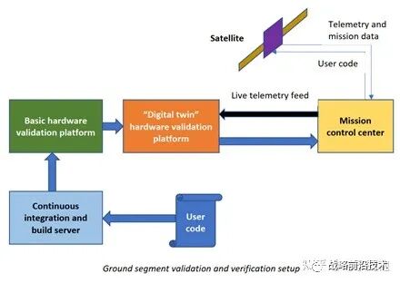 上面的程序员,用devsecops平台开发好任务软件后,通过CI/CD持续集成持续交付的自动化流水线,部署到基础的硬件验证平台上跑做冒烟测试,没问题就到卫星的数字孪生验证平台上跑。卫星数字孪生上跑了没问题,就可以数字签名后发到地面站任务控制中心,由任务控制中心发送到卫星上。
